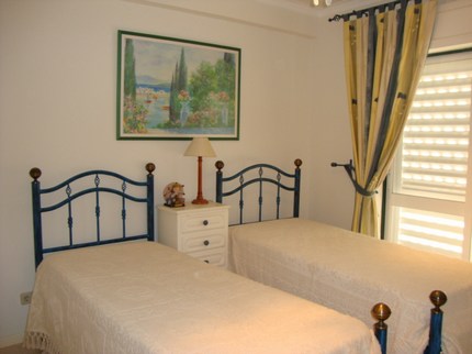 Beautifully decorated, this spacious two bedroom apartment is situated in a quiet area, near the centre of Vilamoura and within walking distance of shops, bars and restaurants. The Cinema precinct, the Marina and the beach are also within leisurely walking distance and it takes approximately 10 minutes gentle walk. The apartment is located on the second floor of a small, modern, closed condominium and it comprises of the entrance hall, fully equipped kitchen with hob, oven, microwave, dishwasher, kettle, toaster, etc.; the lounge/dining room with seating for four people, TV, stereo and VHS video, with patio doors opening onto the westerly facing terrace with a portable BBQ, patio furniture and overlooking the swimming pool and garden. There is also a small laundry room, with washing machine and clothes drier; there is a bathroom, a twin bedroom room with patio doors that open onto a balcony and a double bedroom with ensuite shower room and patio doors opening onto the terrace ideal for soaking up the sun and for al-fesco meals. The garden and pool area are fenced all around. This accommodation is ideal for families travelling together as the apartments on the first floor are also available for rental.