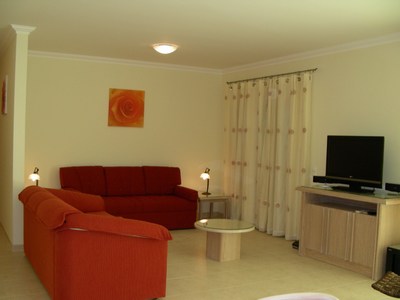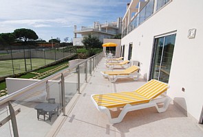 Monte da Balaia is located in the centre of the Algarve, between the town of Albufeira and the village of Olhos d' Água, approximately 400/500 meters from the beach of Maria Luisa. The two bedroom luxury apartment is superbly located and can sleep up to 8 people. It has 1100 Sq Ft. of living space and a large south facing terrace (600 Sq Ft) with all day sun, it has 4 sun loungers and patio furniture ideal for relaxing and sunbathing and also for your al-fresco evening meals. It is approx. 30 minutes from Faro Airport, a 10 minute walk from the beautiful Maria Luisa beach, only 200 meters from a good selection of restaurants, 10 minute walk to the supermarket and the local market place where one can buy fresh fruit, vegetables and fish and it is only a 5 minute drive/taxi ride from the Old Town of Albufeira with it‘s extensive range of restaurants, bars and busy nightlife. This extremely large apartment has an entrance hall, a large lounge / dining room with a 32” LCD TV, DVD player & state of the Art Surround Sound System, 2 sofa beds and patio doors opening onto the terrace; a spacious fully equipped kitchen with gas cooker, electric oven, fridge/freezer, Dishwasher, washing machine, microwave, toaster, kettle, Juicer, iron and ironing board and a CD Player / Radio; it is very well lighted and has direct access to the outside terrace; there are 2 good size bedrooms with 2 single beds each but these can be joined together to make a double bed. The master room has an ensuite bathroom and there is a shower room with a shower cubicle. Linen is provided; Towels provided; Beach/Pool Towels provided. Property is cleaned and towels/Linen changed once a week; Sorry, no pets are allowed. The apartment is air conditioning and is suitable for disabled. The complex has a large adults swimming pool a children’s swimming pool, tennis court and is close to beaches and local amenities.The nearest beach, Praia Maria Luisa (about 400 meters), is a Blue Flag beach as are the six adjacent beaches which are all within a 10 to 20 minute walk. Marie Luisa beach is a beautiful, safe stretch of fine sand about 500 meters long, has it’s own beach restaurant/bar, Life Guard in season and with sun beds/shades available for hire. Watersports are also catered for with boats and windsurfing equipment available. Monte da Balaia is very well placed for access to the Algarve’s many fine golf courses. Next door to Balaia Golf Village which has it’s own 9 hole course and driving range, within a 5 minute drive of Pine Cliffs and within a 15 minute drive of the 5 courses at Vilamoura or Salgados on the west side of Albufeira, between the beaches of Galé and Armação de Pêra.